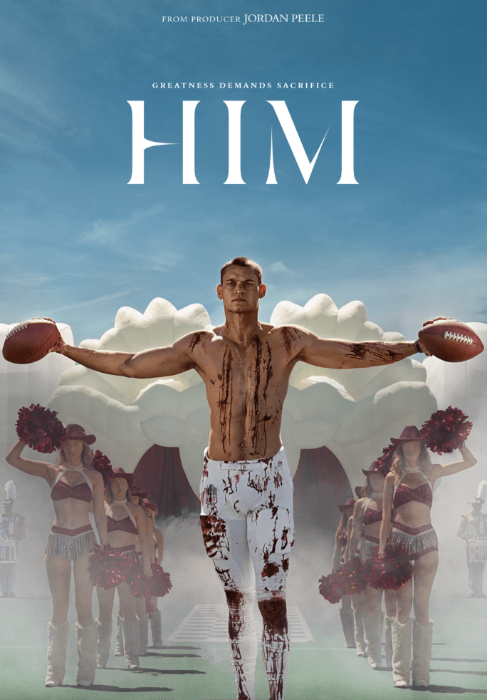 The trailer and poster for HIM (2025) work directly against social, political, and cultural norms. As it stands as a teaser, it is too early to decide whether this piece of promotional media helps or hurts social progress. It spreads awareness for CTE, but at the same time the varied subliminal messaging can confuse the viewer on the problems presented. The nature of a Hollywood horror commentary is automatically divisive, but with the added elements of sports, race, nationalism, and masculinity, it is clear that this film, or at least the trailer, is an unambiguous evaluation of how Hollywood and sports have conflated and commodified the black male athlete.